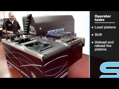 The Eagle 70 S detect automatically the garment to print realizing prints with an accurate and constant positioning and is suitable to create a continuous printing line.